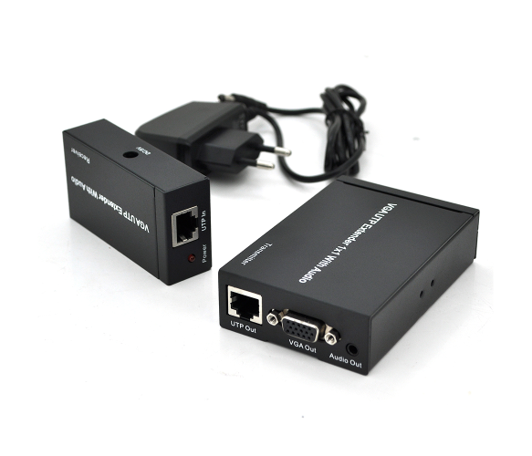 Активний подовжувач сигналу VGA призначений для збільшення довжини передачі сигналу VGA до 300 метрів по кручений парі Cat5e/6e. Він підтримує роздільну здатність 1080P і має чорний колір у коробці.