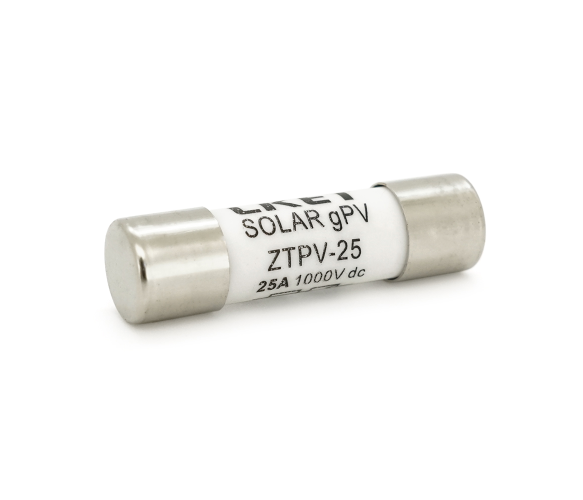 Плавкий запобіжник для використовування в альтернативній енергетиці.Струм запобіжника: 25AПостійна напруга: 1000 ВДіапазон робочих температур: від -25 до + 70 ° СТип корпусу: керамікаРозміри мм: 38*10