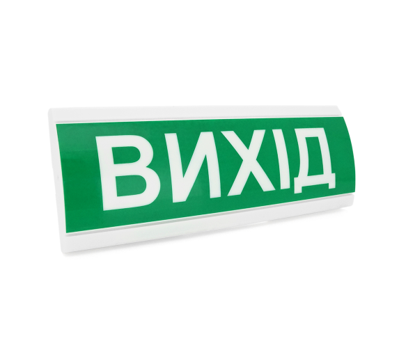 Оповіщувач «Вихід» має естетичний вигляд і впишеться в будь-який інтер'єр. Розміри корпусу: висота 11 см, ширина 30 см. Табло відповідає нормам та стандартам пожежної безпеки України.