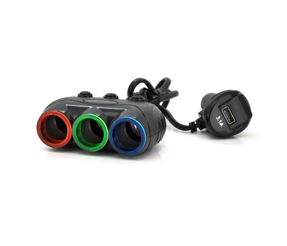 Опис: АЗУ розгалужувач + вольтметр Olesson 1633, 12V-3 * 12V + USB, Чорний, Блістер