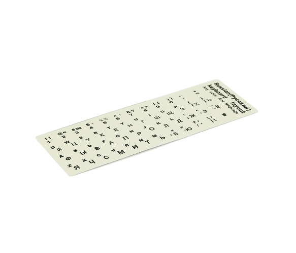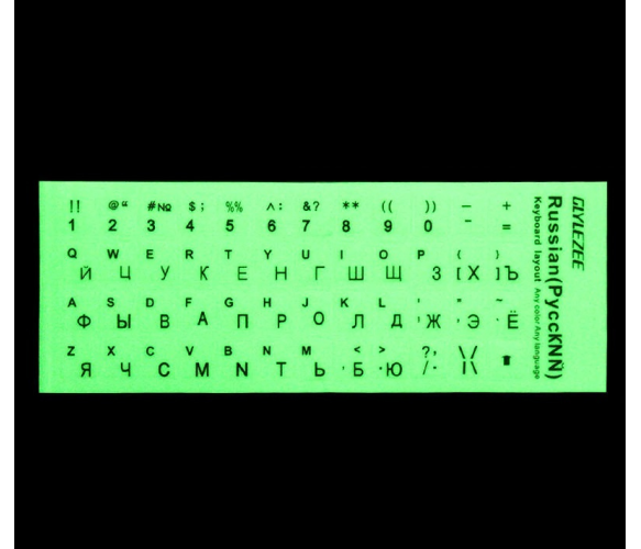 Опис: Набір прозорих наклейок із чорними літерами російською та англійською мовами, з ефектом фосфоресценції.