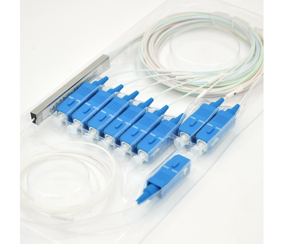 Дільник оптичний Coupler PLC-1x8-split-0-SC/UPC mini 0.9mm - це мініатюрний оптичний спліттер, який поділяє один оптичний сигнал на вісім однакових сигналів. Він має коефіцієнт розподілу 1:8 і працює в діапазоні довжин хвиль від 1310 до 1625 нм. Дільник виготовлений з високоякісного оптичного волокна і має низькі втрати і PDL. Він підходить для використання в різних оптичних програмах, включаючи телекомунікації, телерадіомовлення та вимірювальну техніку.