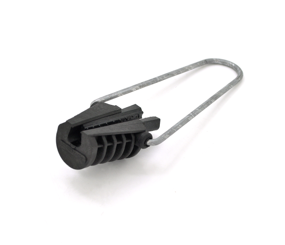 Анкерний натяжний затискач призначений для швидкого закріплення самонесучих ADSS оптичних кабелів круглого перерізу до 6 мм, кабелів на сталевому дроті або тросі. Забезпечують затискання і закріплення кабелів, без необхідності оголювати або відокремлювати трос, що несе. Конструктивно простий затиск для побудови повітряних ліній зв'язку по стовпах освітлення з максимальним прольотом 70 м. Кріпиться за петлю до траверсів Т401, КТ-251, гаків, кронштейнів. Петля виготовлена із високоякісного сталевого дроту гарячого цинкування. Затискачі складається з литого склонаповненого пластикового корпусу, з високоміцного, морозостійкого пластику і полімерних клинів, що самоналаштовуються, які затискають несучий елемент без пошкодження ізоляції. Чи не вимагають інструменту для монтажу.