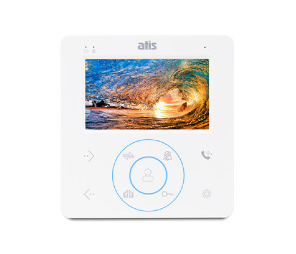 Цветной домофон с TFT экраном 4 дюйма и сенсорными кнопками управления, подключение 2 вызывных панелей. Разговор по громкой связи, есть интерком. Соединение с вызывной панелью 4-проводное. Питание 100-240V, потребление 8Вт. Корпус белого цвета