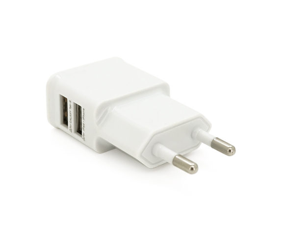 Це простий та зручний мережний зарядний пристрій з двома USB-портами, що забезпечує швидку зарядку для двох пристроїв одночасно.