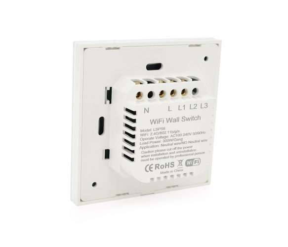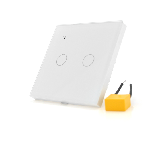 Опис: Сенсорний вимикач без заземлення з WiFi керуванням, двоканальний, білий, розміри 86х86х35мм.