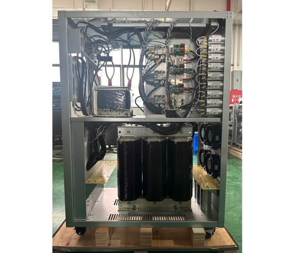 Промисловий трифазний онлайн джерело безперебійного живлення. Використовується для захисту живлення Центрів Обробки Даних, файлових серверів і АТС, а також будь-якого іншого обладнання, що пред'являє підвищені вимоги до якості мережевого електроживлення. Принцип роботи полягає в подвійному перетворенні (double conversion) струму. Спочатку вхідна змінна напруга перетвориться в постійну, потім назад в змінну напругу за допомогою зворотного перетворювача (інвертора). При втраті живлення в міській мережі, час перемикання в автономний режим дорівнює нулю.