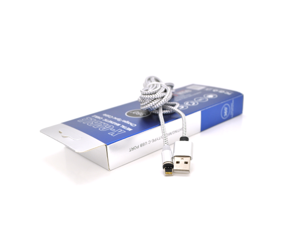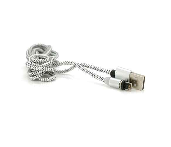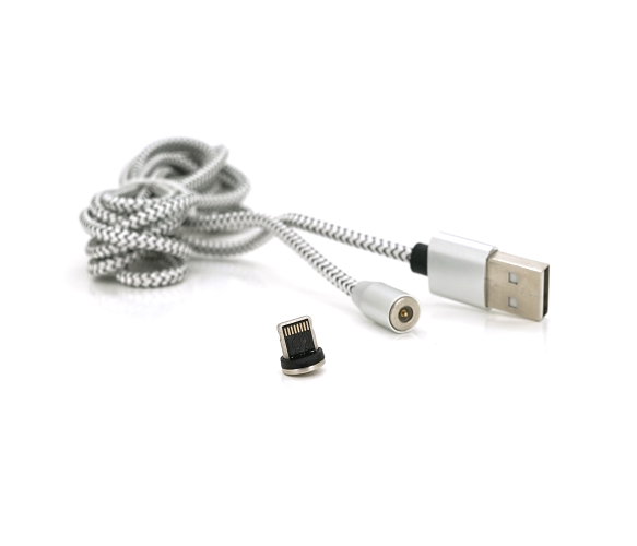 Магнітний кабель PiPo USB 2.0 /Lighting, 2m, 2А, тканинна оплетка, броньований, знімач, Silver, BOX