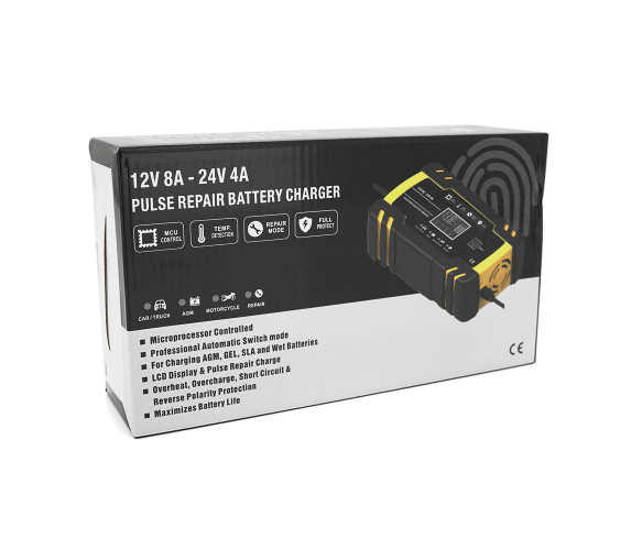 Автоматичний зарядний пристрій FBC122408D призначений для заряджання акумуляторів 12V та 24V різних типів, включаючи MF, WET, AGM та GEL. Воно оснащене мікропроцесорним управлінням та 3-ступінчастою автоматичною зарядкою, що забезпечує високу ефективність та безпеку зарядки.