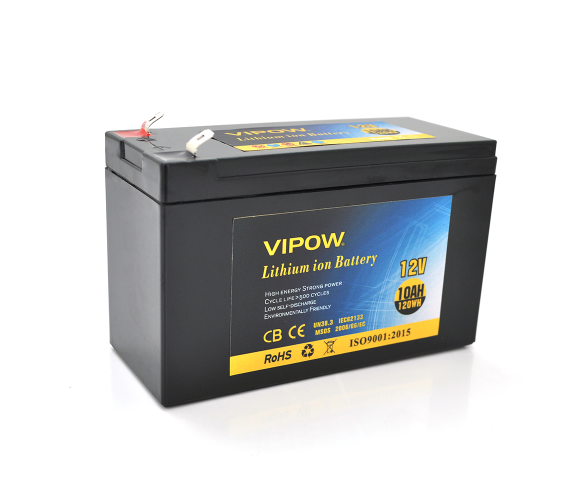 Акумуляторна батарея літієва Vipow 12 V 10A - це високоякісна літійна батарея, призначена для використання у різних електронних пристроях, таких як автомобіль, човен, мотоцикл, тощо.