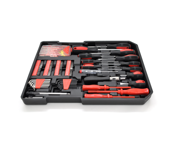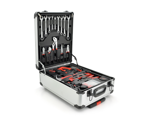 Набір SWISS KRAFT - набір інструментів, який має бути в кожному будинку. У ньому є практично все, що може знадобитися для ремонту. Він зроблений таким чином, що вам зручно буде швидко знайти потрібну деталь, а їх у валізі аж 499 штук. Коліщатка на корпусі валізи та телескопічна ручка, дозволяє його транспортувати без особливих зусиль. Кути валізи захищені металевими накладками, тому він прослужить довго.