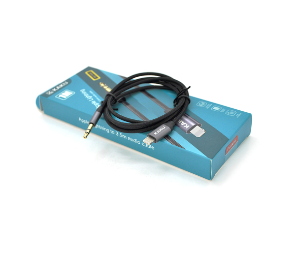 Перехідник KSC-427 Lighting(M) =>Jack 3.5mm(M), 1м, чорний/сріблястий, у коробці.