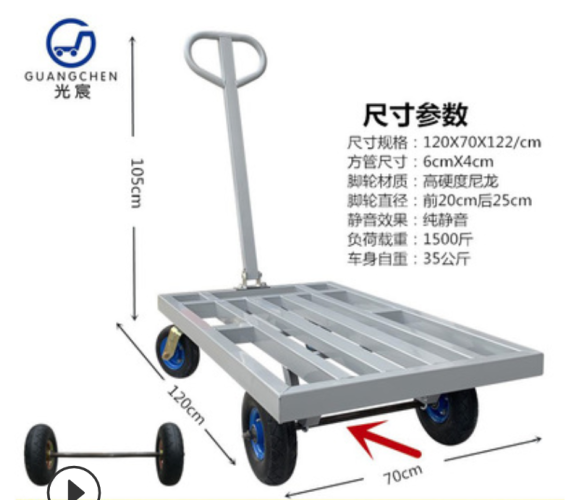 Опис: Візок металевий складський призначений для перевезення вантажів на складі або у виробничих приміщеннях. Має вантажопідйомність до 1500 кг та власну вагу 35 кг.