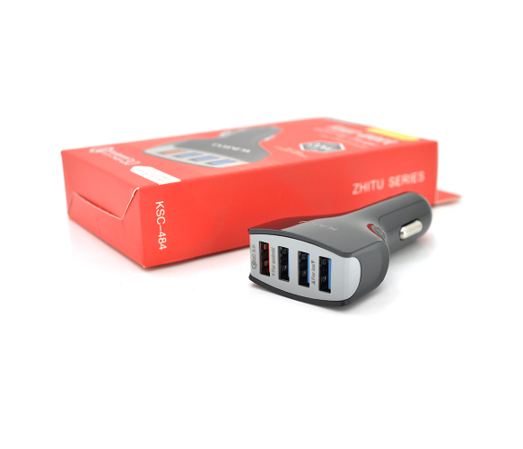 АЗП 12-32V iKAKU KSC-484 ZHITU QC3.0, 4xUSB, Output: USB1/2/3: DC5V/2.8A, USB4: output 9V/2.2A, 12V/2.2A (QC) 20W(MAX), Black, Blister-box