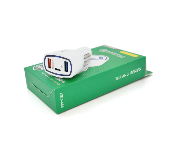 АЗП 12-32V iKAKU KSC-485 RUILANG QC3.0, 2xUSB+Type-C, Output: USB1/Type-: DC5V/2.4A, USB2: output 9V/2.2A, 12V/2.2A (QC) 20W(MAX), White, Blister-box