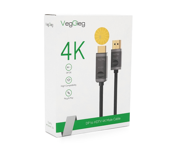 Кабель VEGGIEG DH-402 Display Port (тато) на HDMI (тато) - призначений для підключення комп'ютера або ноутбука до проектора, телевізора, монітора і ін.