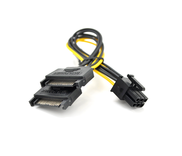Кабель-перехідник для живлення відеокарти з роз'ємами SATA+SATA до роз'єму 6P забезпечує сумісність між блоком живлення, що має роз'єми SATA, та відеокартою, що потребує роз'єм 6P для живлення. OEM зазвичай означає, що кабель виготовлений стороннім виробником і може не мати офіційний логотип або упаковка оригінального виробника. Цей кабель-перехідник дозволяє використовувати стандартні роз'єми SATA для живлення відеокарти, яка потребує роз'єму 6P, і може бути зручним рішенням, якщо у вас є вільні роз'єми SATA на блоці живлення, але не вистачає роз'ємів 6P для живлення відеокарти.