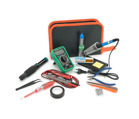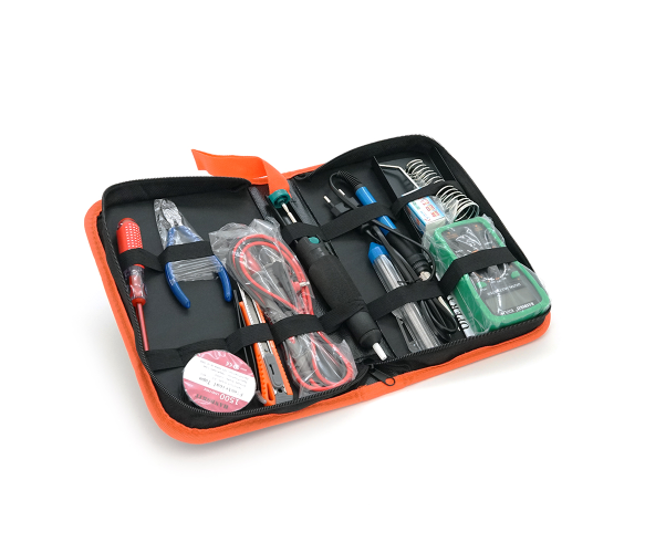 Цей універсальний набір інструментів для паяння HandSkit включає 15 предметів, серед яких паяльник із регулюванням температури, мультиметр та аксесуари для зручної роботи. Комплект призначений для ремонту електроніки, паяння радіодеталей та інших точних робіт. Всі інструменти акуратно упаковані у зручний кейс, що забезпечує легке зберігання та транспортування.