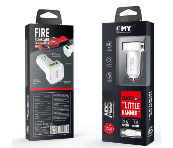 Набір 2 в 1 АЗУ With Micro-USB Cable DC12-24V MY-31, 2 x USB, 5V / 18W, Output: 5V / 3.6A, White, Blister- box