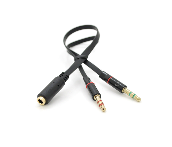Опис: Спліттер Jack 3.5 (мама) 2 pin => 2 * Jack 3.5 (тато) 2 pin, плоский, Black, Пакет