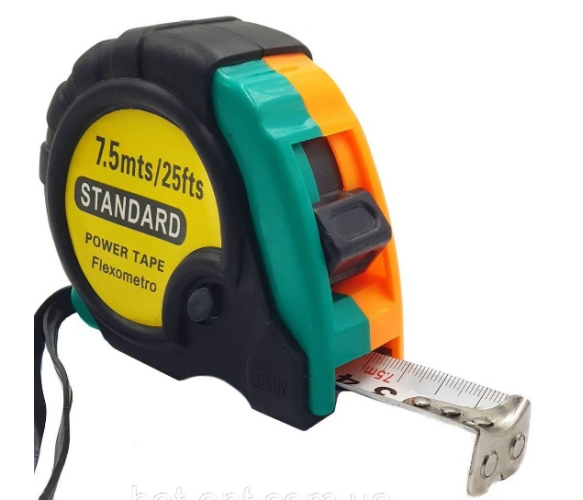Рулетка гумова STANDART, 7,5 м - це ідеальний вибір для професіоналів і домашніх майстрів, які цінують якість, надійність і зручність в роботі.