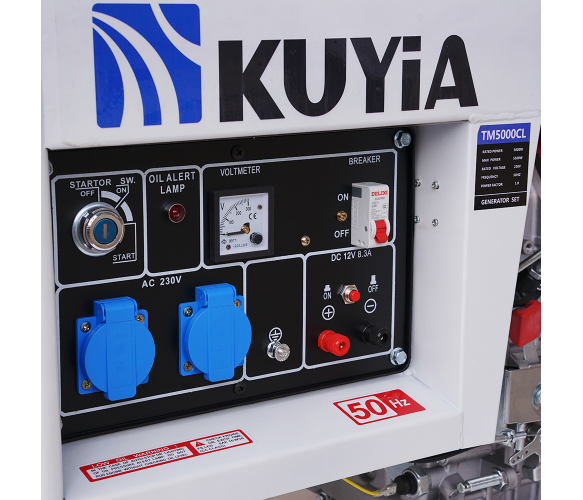 Дизельний генератор Kuyia TM5000CL - це автономне джерело енергопостачання професійного рівня, яке забезпечує стабільне електроживлення обладнання в умовах відсутності централізованої мережі. З номінальною потужністю 4,5 кВт та максимальною — 5 кВт, установка здатна одночасно живити побутові прилади, електроінструмент та спеціалізовану техніку.