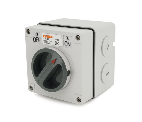 Опис: Перемикач ON/OFF Chenf призначений для використання в умовах високої вологості та пилу. Його захист IP66 забезпечує надійну роботу за будь-яких погодних умов. Цей перемикач має номінальну напругу 250V та номінальний струм 10A.