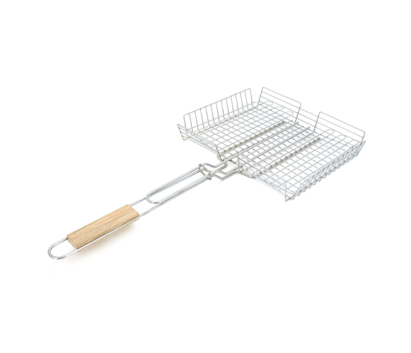Грати нержавіючі прямокутні для гриля - барбекю 320*250*50 мм - незамінний товариш для пікніка, риболовлі, полювання або домашніх посиденьок біля багаття. Ґрати досить об'ємні і дозволяють приготувати продукти різних розмірів. За допомогою ґрат можна приготувати різні страви: стейки, рибу, соковиті курячі крильця, грибочки та ін. Виходить неймовірно смачно! Ґрати виконані з нержавіючої сталі з довгою дерев'яною ручкою, завдяки якій зручно тримати і перевертати без ризиків обпектися.