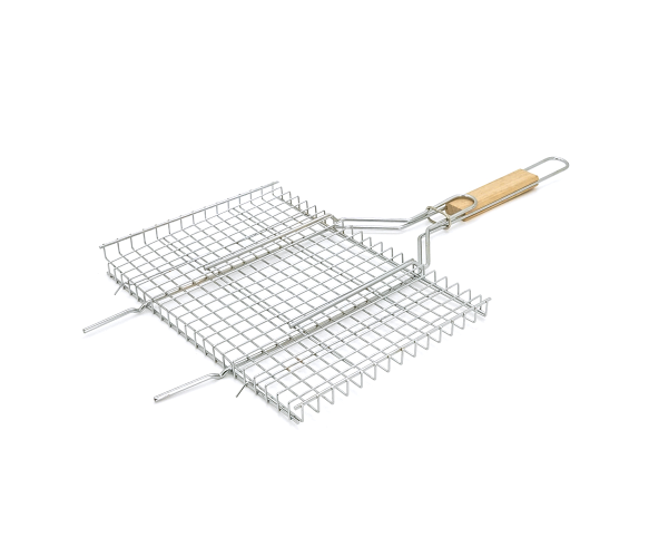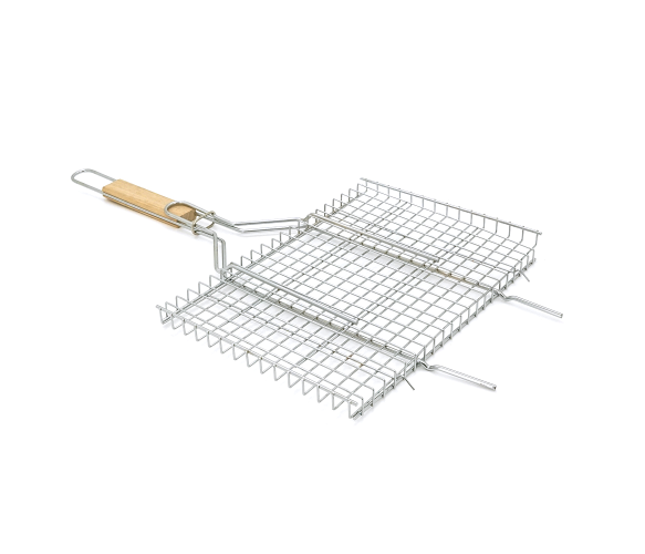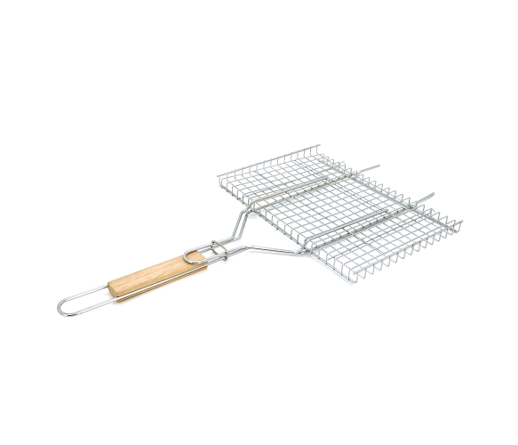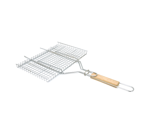 Грати нержавіючі прямокутні для гриля - барбекю - незамінний товариш для пікніка, риболовлі або домашніх посиденьок біля багаття. За допомогою ґрат можна приготувати різні страви: стейки, соковиті курячі крильця, грибочки та ін. Виходить неймовірно смачно! Ґрати виконані з нержавіючої сталі з довгою дерев'яною ручкою, завдяки якій зручно тримати і перевертати без ризиків обпектися.