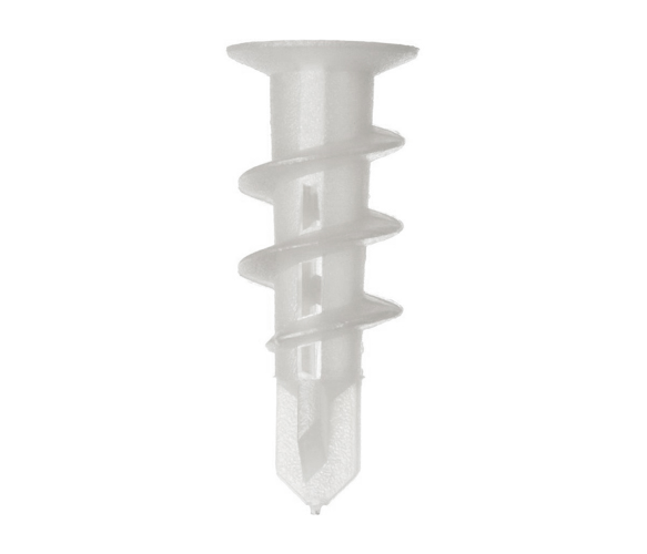 Дюбель має циліндричною головкою, з внутрішньої рельєфною поверхнею, а також різьбовий частиною. Найкращим чином підходить для монтажу в гипсокартоне, використовуються для кріплення різних вимикачів, полиць, плінтусів, світильників, кабельних каналів, дерев'яних рейок, картин на гіпсокартон і так далі. Є максимально стійким до зовнішніх умов середовища, при цьому здатний витримувати великі перепади температури.