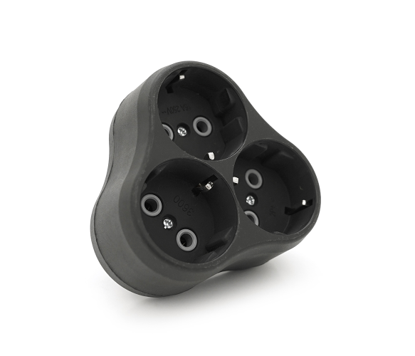 Розетка трійник із заземленням A202В, 2Р+PE, 16А Black, Q14