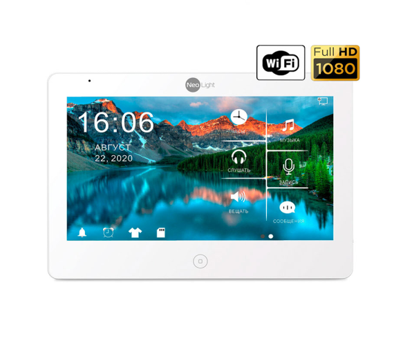 Видеодомофон NeoLight MEZZO HD WF - это самый большой W-Fi домофон Full HD с сенсорным емкостным экраном 10.1" и тонким Slim корпусом среди линейки домофонов NeoLight. Он красив, элегантен и удобен в работе за счет экрана большего размера. Возможность управлять всеми настройками домофона при помощи сенсорного экрана с разрешением 1024х600 делает видеодомофон NeoLight MEZZO HD WF еще более привлекательным.