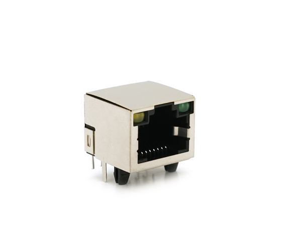 Роз'єм RJ45 горизонтальний екранований з інтерфейсом 8P8C під пайку, з індикацією, роз'єм 16H, Silver Q60