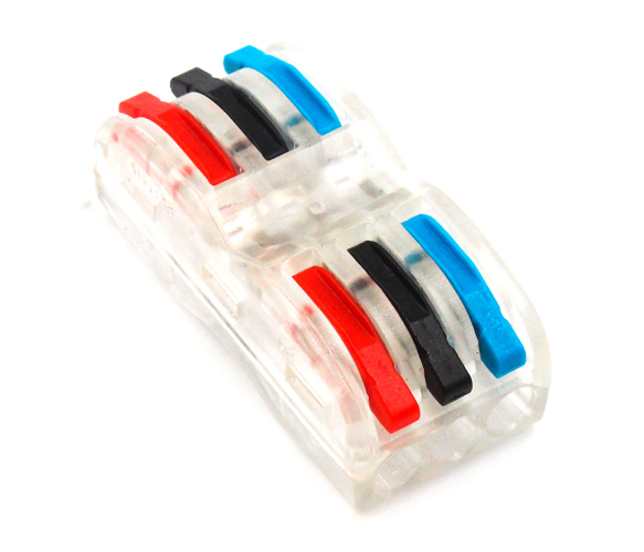 Опис: Клемна колодка з натискними затискачами 3-провідна SPL-3 призначена для використання в розподільчих коробках. Вона має 3 контакти та виконана в прозорому кольорі.