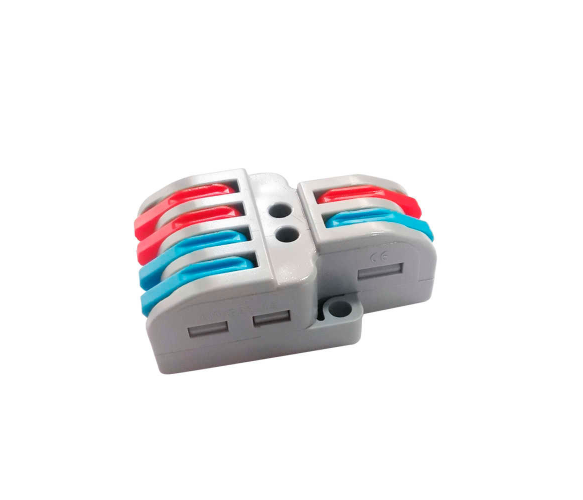 Клемна колодка з натискними затискачами 2х4-проводу LT-422 призначена для використання в розподільчих коробках. Вона має характеристики, що дозволяють їй працювати при напрузі до 450V і струмі до 32A. Колодка виконана у сірому кольорі.