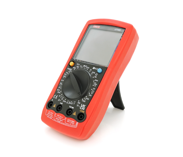 - Вбудована підставка забезпечує зручне розміщення мультиметра під час вимірювання.