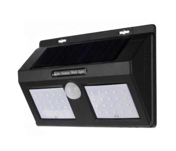 Вуличний ліхтар BL-1626A з датчиком руху та сонячною панеллю призначений для освітлення прилеглої території до будинку чи іншого приміщення. Ліхтар оснащений 40 світлодіодами та має кріплення на стіну. Колір чорний.