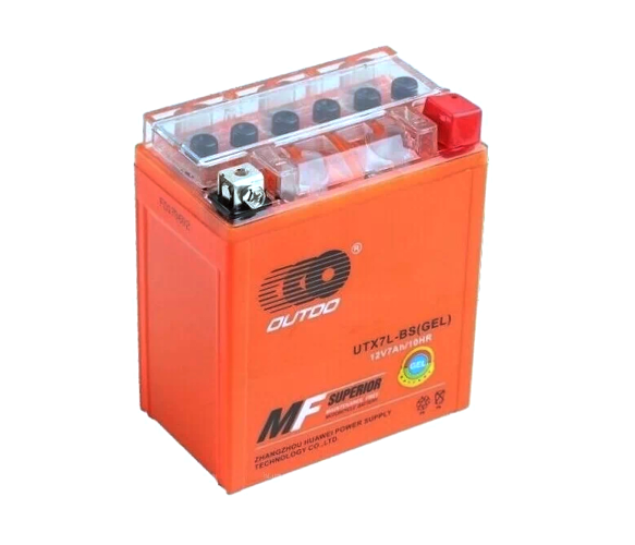 Мотоакумулятор OUTDO UTX7L-BS GEL є 12-вольтовим 7-амперним акумулятором кольору помаранчевого кольору. Його розміри становлять 113 х 70 х 130 мм, і він виготовлений компанією Q8.