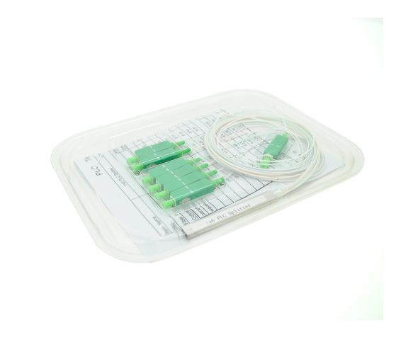 Дільник оптичний Coupler PLC оконцованнимі коннекторами SC / APC з кількістю висновків 8, від кількості висновків залежать розміри корпусу від 60 × 7х4 мм до 80 × 20 × 6 мм. Планарні оптичні сплітери є високопродуктивними, надійними і компактними пристроями для поділу потужності оптичного сигналу, які спеціально розроблені для застосування в мережах FTTH, PON і CATV. Засновані на унікальній хвильової технології іонного обміну в скловолокна. Ці сплітери / розгалужувачі мають дуже низькі вносяться втрати і PDL (поляризационно залежні втрати), відмінну рівномірність каналів і широкий робочий діапазон довжин хвиль.