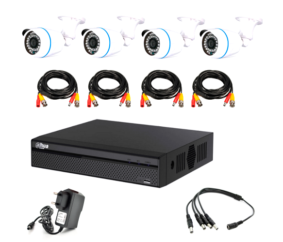 В комплект входят 4 уличные камеры PIPO высокого разрешения 2 мегапикселя, объектив 3,6мм угол обзора более 80 градусов , и инфракрасной подсветкой до 20 метров в ночное время