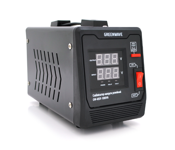 Стабілізатор напруги релейний Green Wave Mauser 1000VA - забезпечить побутові пристрої безпечною енергією та стабільною напругою, а також захистить від високочастотних та високовольтних імпульсів.