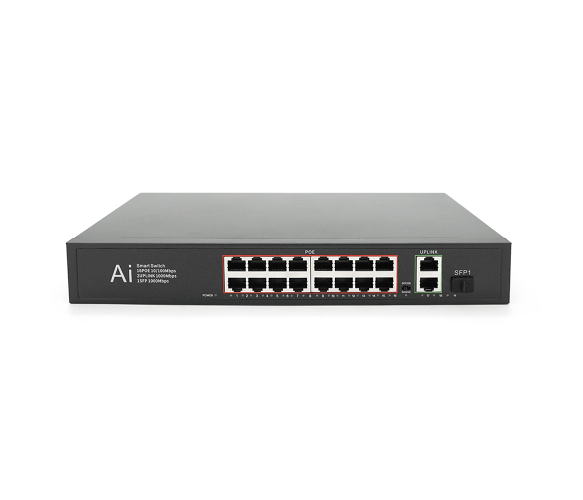 Роз'єм 16 портів POE 10/100 Мбіт/с; 2 порти UP-Link/1000 Мбіт/с; 1 SFP 1000 Мбіт/с