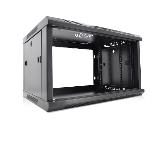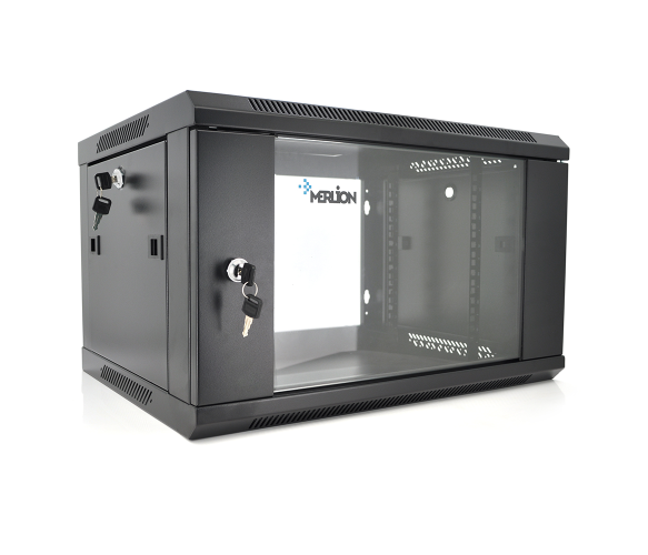 Шафа Merlion 6U. Привабливий зовнішній вигляд, двері із загартованого скла, непомітний чорний колір. У верхній кришці шафи передбачено місце для встановлення вентилятора охолодження. Зовнішня висота складає 367 мм, зовнішня глибина – 600 мм. Бічні двері – знімні на замках. Передні двері із загартованого скла з наявністю замку для запобігання небажаному доступу до обладнання.