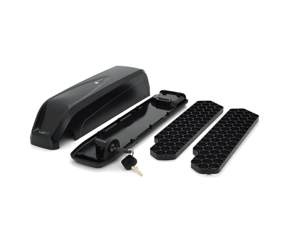 Акумуляторний корпус Hailong SSE-113 G56 призначений для збирання батарей для електротранспорту, таких як електровелосипеди. Цей корпус монтується на нижню трубу рами велосипеда, забезпечуючи зручність встановлення та експлуатації.