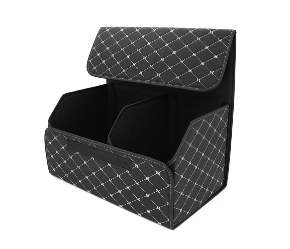Цей вишуканий та практичний складний органайзер створений для елегантного та зручного зберігання у вашому автомобілі. Виготовлений із міцної шкіри з використанням нетканого матеріалу, він не лише надає інтер'єру вашого автомобіля стильного вигляду, а й допомагає організувати та зберігати різні предмети, роблячи вашу поїздку зручнішою та безпечнішою.