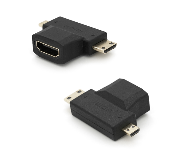 Перехідник mini HDMI (тато) - micro HDMI (тато) - HDMI (мама) - багатофункціональний високоякісний перехідник, який допоможе швидко підключити твої улюблені гаджети до телевізора або монітора з HDMI. Позолочені роз'єми і контакти перехідника забезпечують відмінну якість передачі сигналу без втрат.
