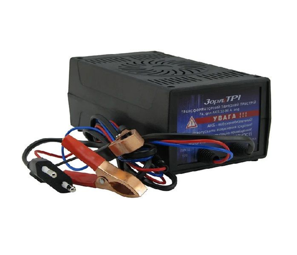 Трансформаторний зарядний пристрій ТР-1, призначений для заряджання 12 В акумуляторних батарей від 32 до 90 А*год зарядним струмом до 7 А.