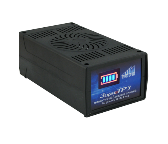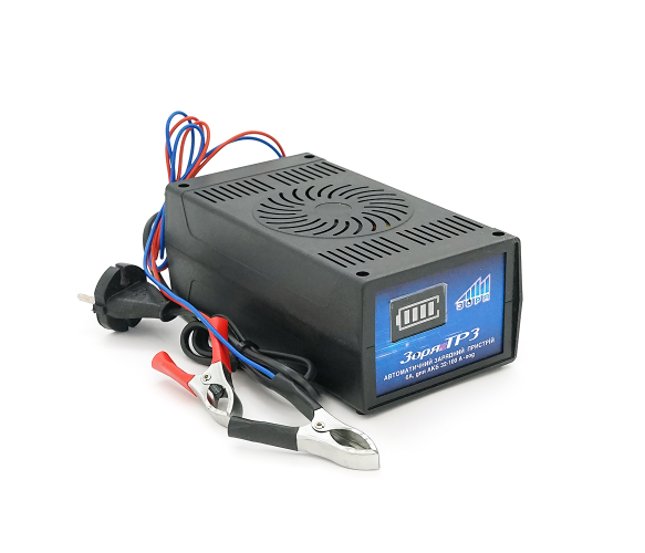 Трансформаторний зарядний пристрій Зоря ТР-3, призначений для заряджання 12 В акумуляторний батарей від 32 до 100 А * год зарядним струмом до 6 А.