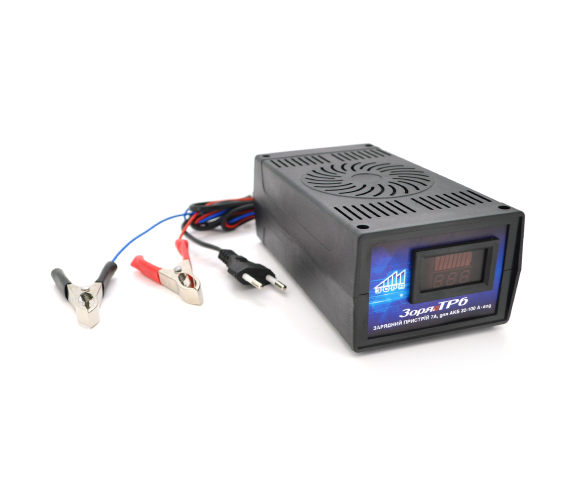 Автоматичний трансформаторний зарядний пристрій ТР-6, призначений для заряджання 12 В акумуляторних батарей ємністю від 32 до 100А*рік, зарядним струмом до 7А. Пристрій виконаний у пластиковому корпусі. На лицьовій панелі є індикатор заряду та цифровий амперметр. Захист від перенагріву