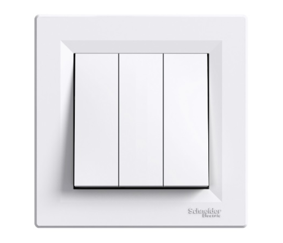 Триклавішний вимикач Schneider Asfora є білим вимикачем з трьома клавішами, призначеним для використання в електричних системах.